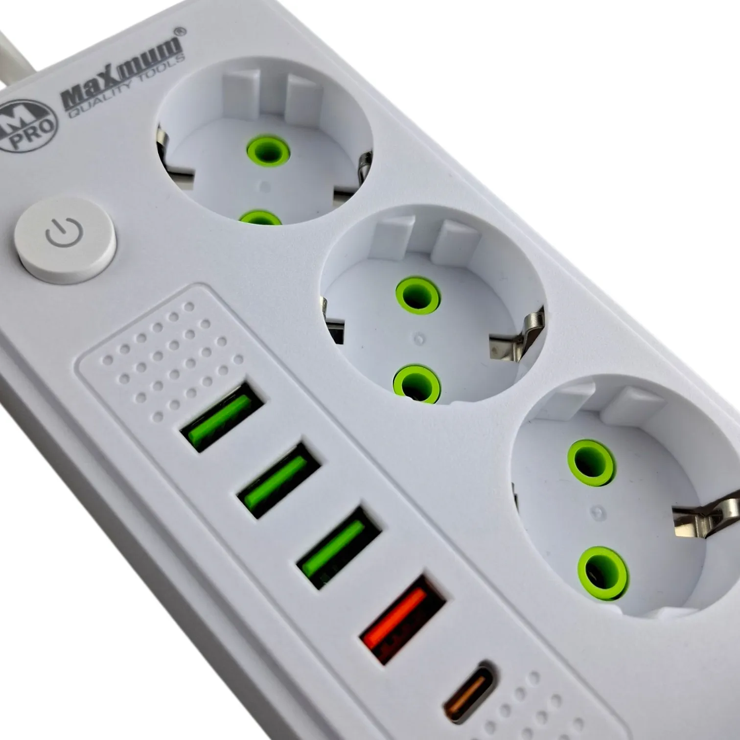 Удлинитель с заземлением 2 м, плоский, 3 розетки EU_UK_US, 5 USB портов,Type C,T05, "MAXIMUM" MX 148