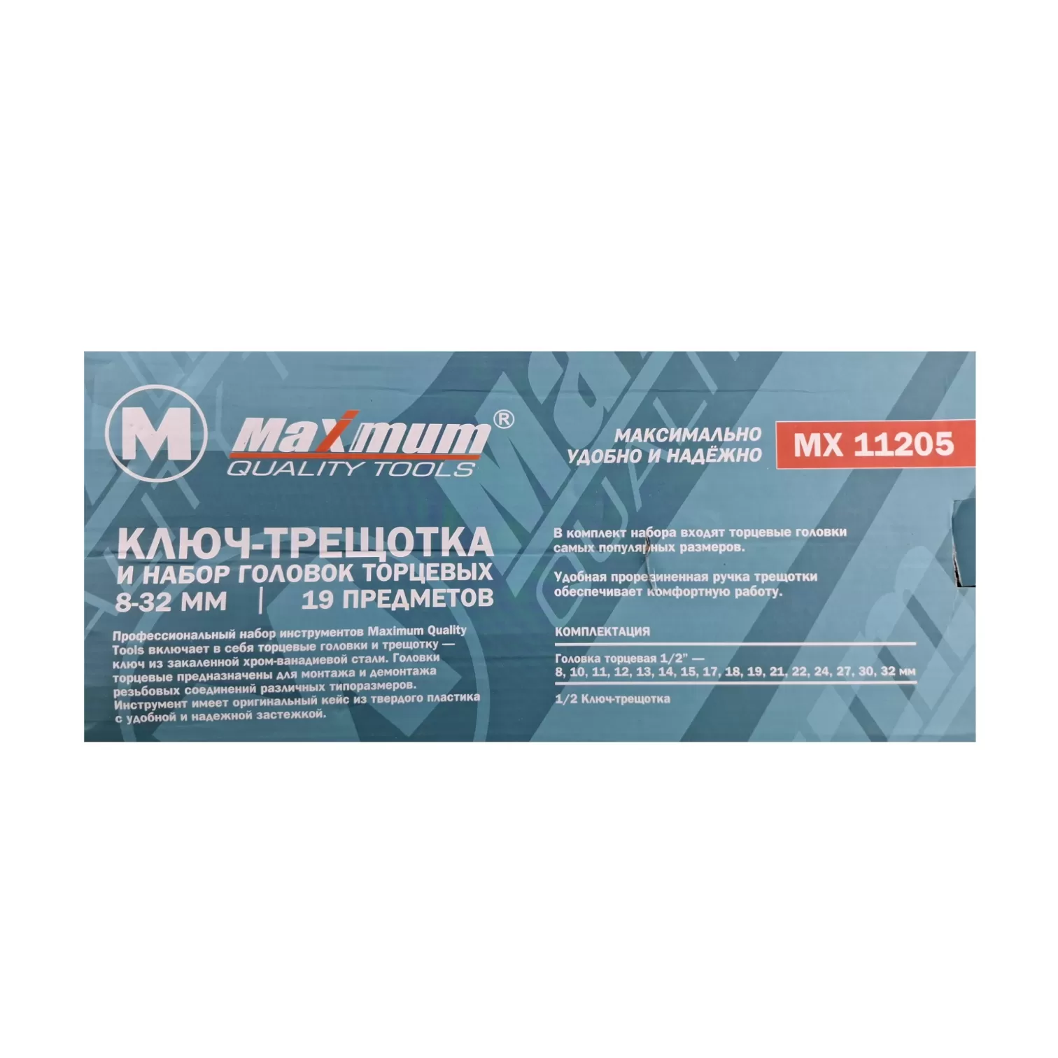 Профессиональный набор инструментов Maximum Quality Tools включает в себя торцевые головки и трещотку — ключ из закаленной хром-ванадиевой стали. Головки торцевые предназначены для монтажа и демонтажа резьбовых соединений различных типоразмеров. Инструмент имеет оригинальный кейс из твердого пластика с удобной и надежной застежкой.