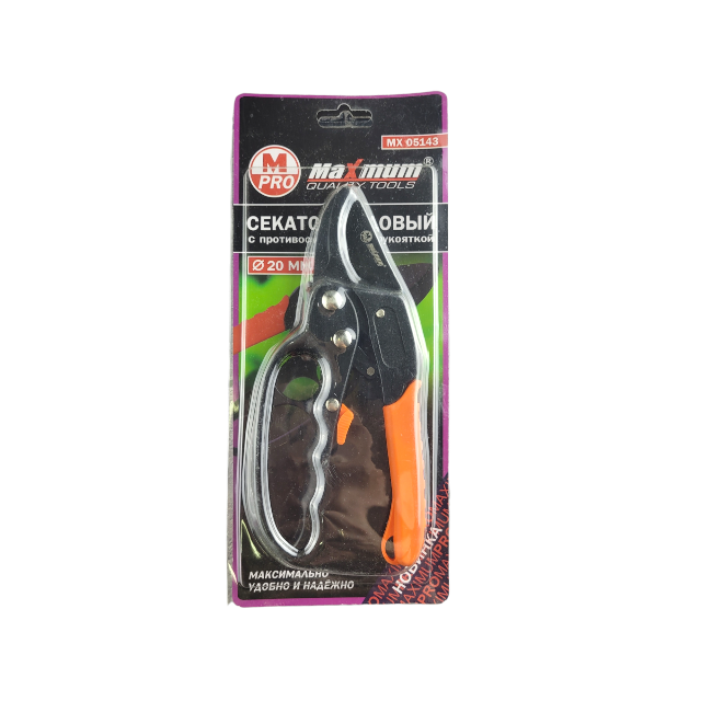 Секатор с храповым механизмом от Maximum quality tools предназначен для резки веток, кустарников и деревьев до 2 см. Храповый механизм снижает усилие, которое необходимо прилагать при работе. Облегченный высокопрочный корпус и режущее лезвие SK 5 делают инструмент удобным и надежным. Оксидированное покрытие лезвия максимально защищает от коррозии. Секатор делает бережный гладкий срез, сохраняя волокна обрезаемого растения.