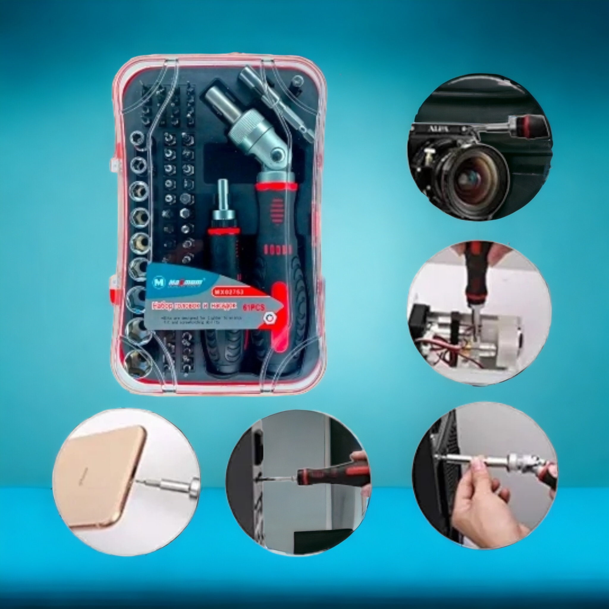 Набор отверток с храповым механизмом 61 в 1, Maximum–это профессиональный портативный аппаратный набор инструментов от бренда «Maximum». Набор предназначен для мелких монтажных работ и ремонта оборудования. Отвертка, выполнена из CRV стали, с магнитным механизмом.