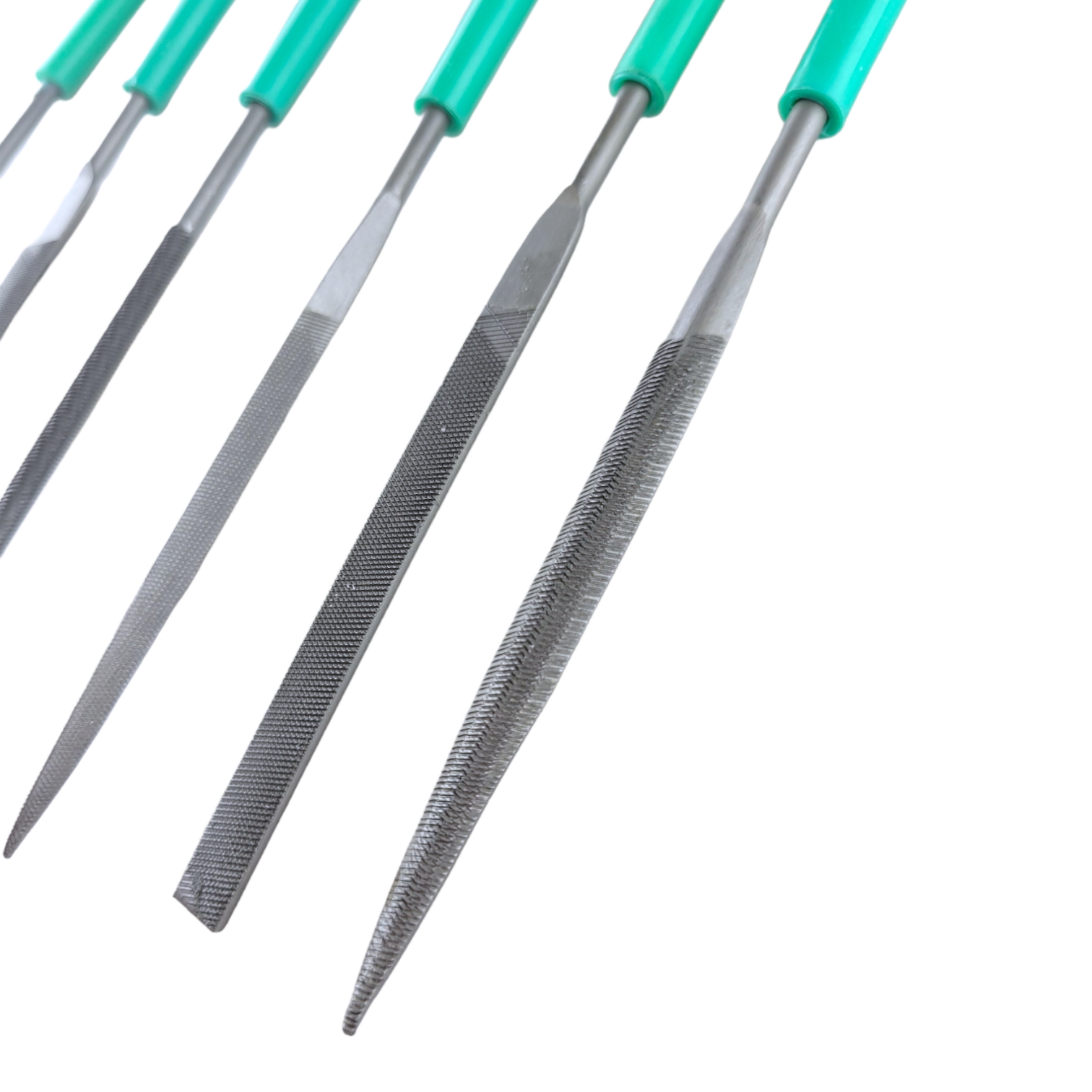 Набор миниатюрных напильников от "MAXIMUM" состоит 6 инструментов: плоского, плоского с заостренным наконечником, полукруглого, круглого, треугольного и квадратного. Набор мини надфилей с острыми наконечниками используется для обработки различных поверхностей, острых кромок, заусенцев или выступов. Рабочая часть выполнена из стали с бархатной насечкой. Рукоятки изготовлены из пластика. Набор поставляется в специальном резиновом чехле.