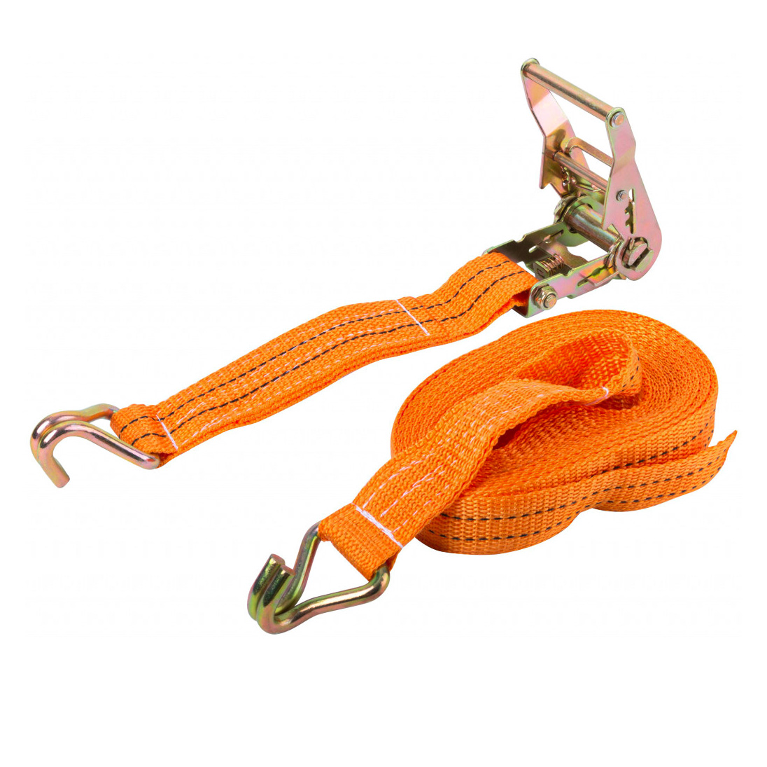 Ремень стяжной 3 тонны 10 метров длиной оснащен храповым механизмом, который позволяет использовать весь ресурс изделия при закреплении груза. Данная модель оснащена регулировкой длины. Полиэстеровая лента 46 мм шириной имеет специальную двойную прошивку, которая повышает прочность и долговечность изделия. Храповик и специальные крюки стяжки для груза выполнены из оцинкованной стали.