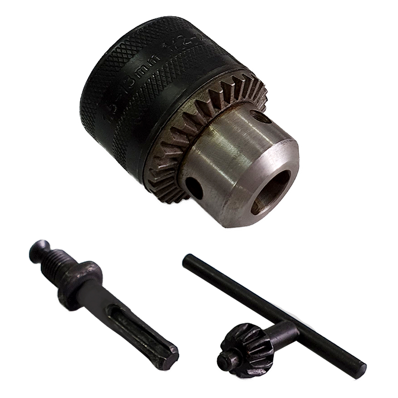 Патрон для дрелей, шуруповертов и сверлильных станков применяется для фиксации оснастки. Посадка патрона осуществляется на резьбу 1/2 - 20UNF. Патрон 13 мм служит для зажима сверла, венчика для миксера, шлифовальных абразивных дисков и других вспомогательных элементов в строительстве и ремонте. Адаптер можно использовать как в дрели, так и перфораторе SDS+, что уменьшает издержки при покупке электроинструмента. При ремонте деревянных домов патрон зажимной на перфоратор SDS+, обладая большим посадочным местом под насадки от 1,5 до 13 мм, и мощностью перфоратора в режиме сверления при малых оборотах, показывает свою эффективность и безопасность. Ключ для патрона 1/2-20 UNF + адаптер, надежно фиксирует насадки, замедляя износ венцов элемента зажима при высоких нагрузках.